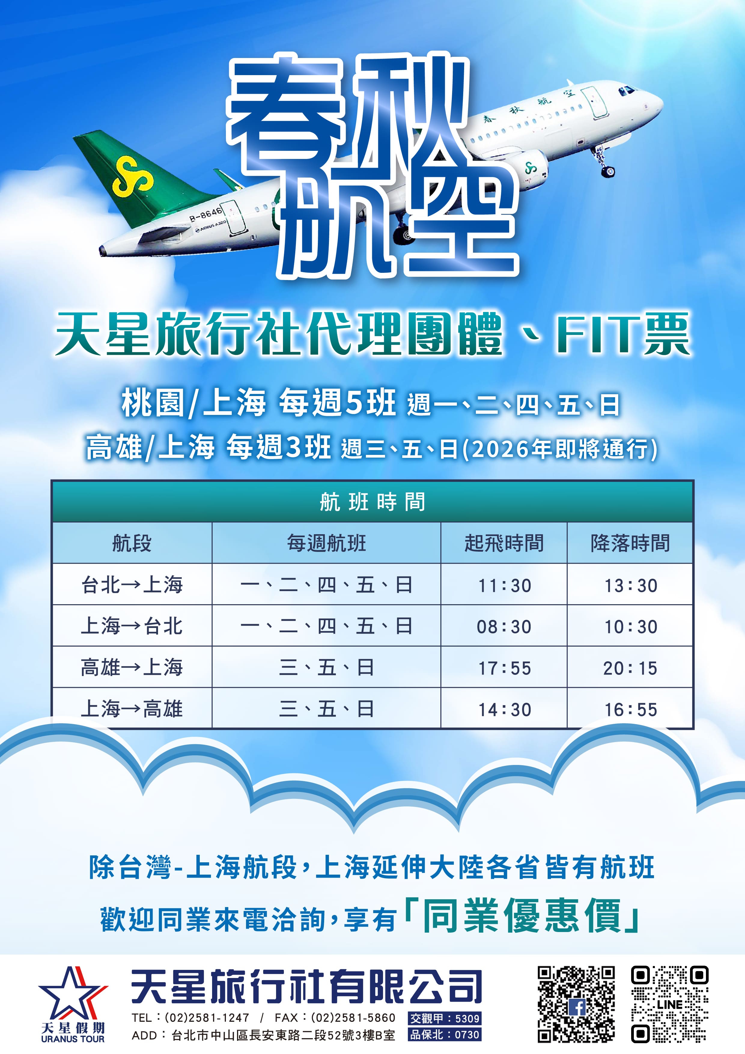 我們正式開始代理「春秋航空」團體票、FIT票囉!